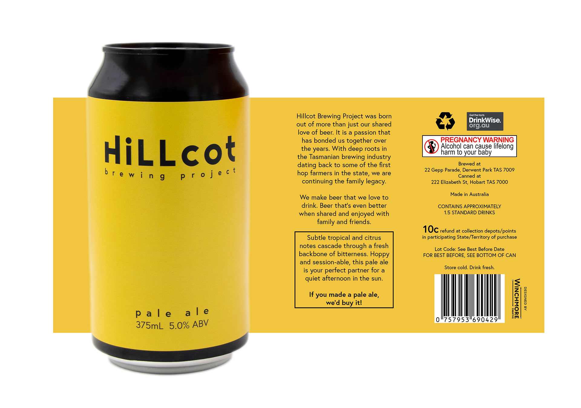 'Hillcot Brewing Project' logo and Pale Ale can design [2023]